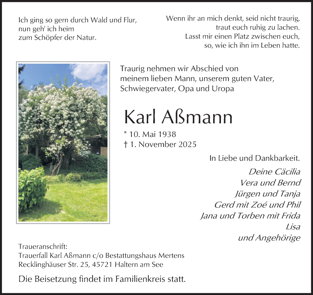 Hier finden Sie alle Traueranzeigen aus der Zeitung, die bisher für Karl Aßmann erschienen sind. Weitere Traueranzeigen, die in der Zeitung erscheinen, werden hier ebenfalls aufgelistet