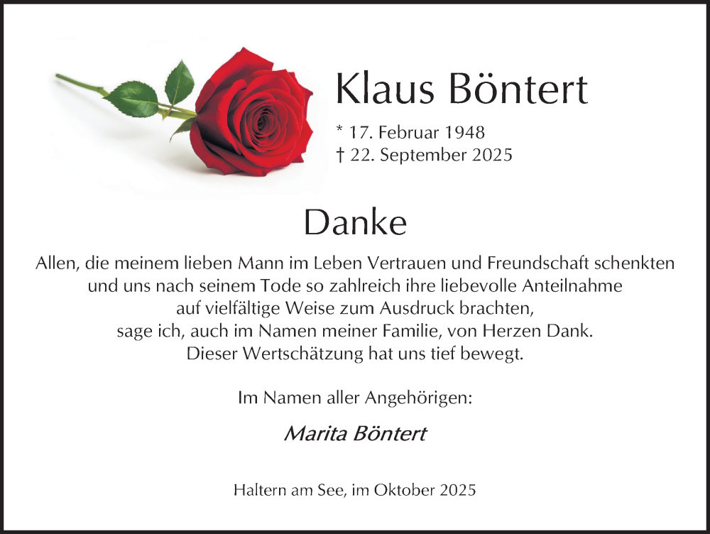 Hier finden Sie alle Traueranzeigen aus der Zeitung, die bisher für Klaus Böntert erschienen sind. Weitere Traueranzeigen, die in der Zeitung erscheinen, werden hier ebenfalls aufgelistet