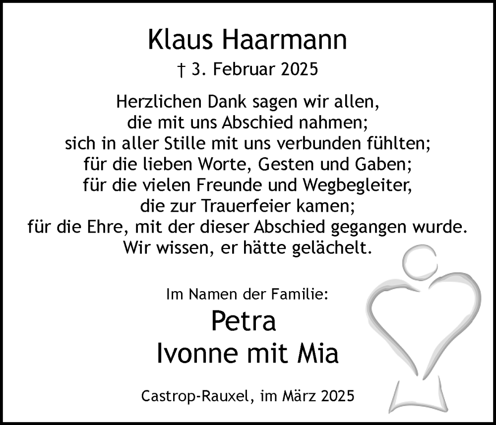 Hier finden Sie alle Traueranzeigen aus der Zeitung, die bisher für Klaus Haarmann erschienen sind. Weitere Traueranzeigen, die in der Zeitung erscheinen, werden hier ebenfalls aufgelistet