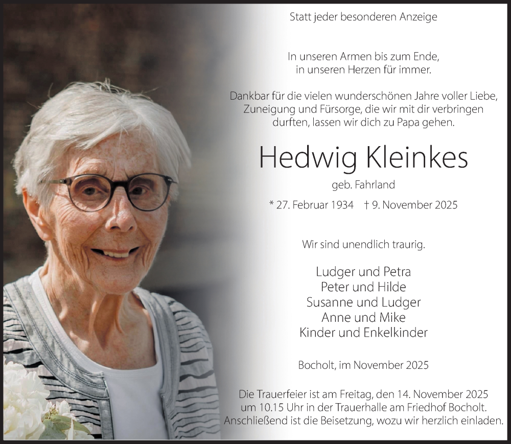 Hier finden Sie alle Traueranzeigen aus der Zeitung, die bisher für Hedwig Kleinkes erschienen sind. Weitere Traueranzeigen, die in der Zeitung erscheinen, werden hier ebenfalls aufgelistet