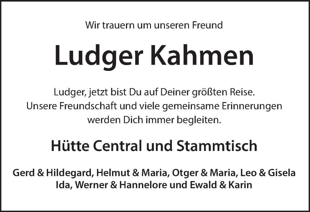 Hier finden Sie alle Traueranzeigen aus der Zeitung, die bisher für Ludger Kahmen erschienen sind. Weitere Traueranzeigen, die in der Zeitung erscheinen, werden hier ebenfalls aufgelistet