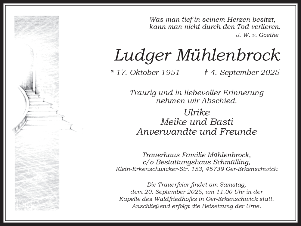 Hier finden Sie alle Traueranzeigen aus der Zeitung, die bisher für Ludger Mühlenbrock erschienen sind. Weitere Traueranzeigen, die in der Zeitung erscheinen, werden hier ebenfalls aufgelistet