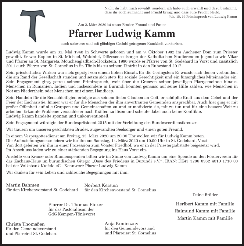 Hier finden Sie alle Traueranzeigen aus der Zeitung, die bisher für Ludwig Kamm erschienen sind. Weitere Traueranzeigen, die in der Zeitung erscheinen, werden hier ebenfalls aufgelistet