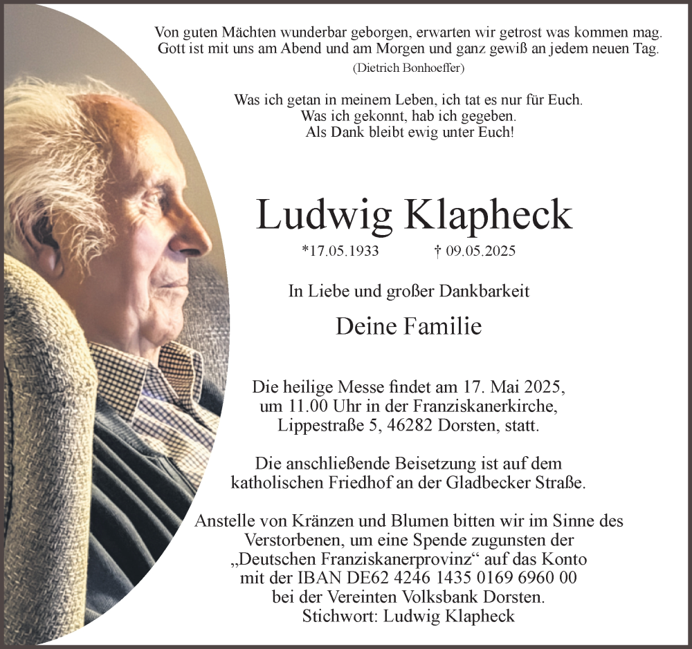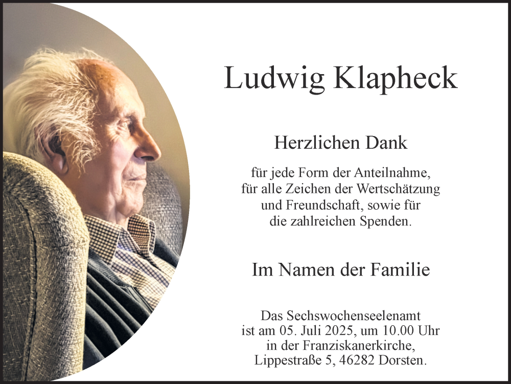 Hier finden Sie alle Traueranzeigen aus der Zeitung, die bisher für Ludwig Klapheck erschienen sind. Weitere Traueranzeigen, die in der Zeitung erscheinen, werden hier ebenfalls aufgelistet