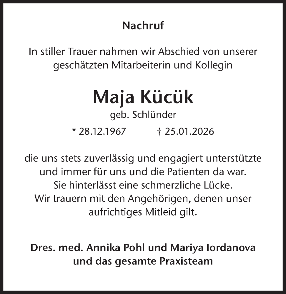Hier finden Sie alle Traueranzeigen aus der Zeitung, die bisher für Maja Kücük erschienen sind. Weitere Traueranzeigen, die in der Zeitung erscheinen, werden hier ebenfalls aufgelistet
