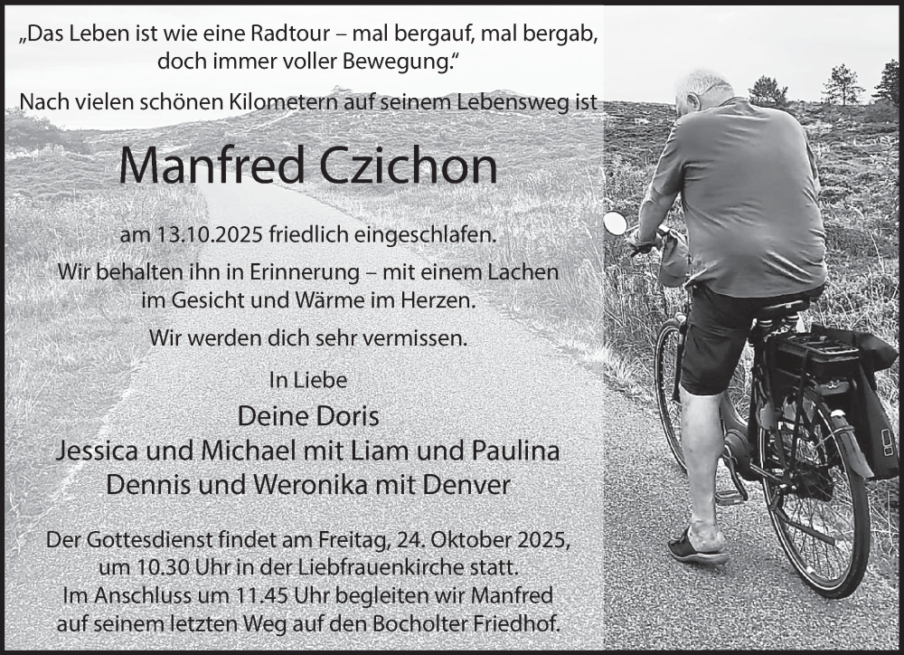 Hier finden Sie alle Traueranzeigen aus der Zeitung, die bisher für Manfred Czichon erschienen sind. Weitere Traueranzeigen, die in der Zeitung erscheinen, werden hier ebenfalls aufgelistet