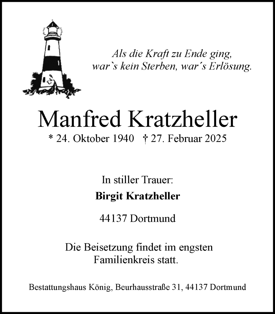Hier finden Sie alle Traueranzeigen aus der Zeitung, die bisher für Manfred Kratzheller erschienen sind. Weitere Traueranzeigen, die in der Zeitung erscheinen, werden hier ebenfalls aufgelistet