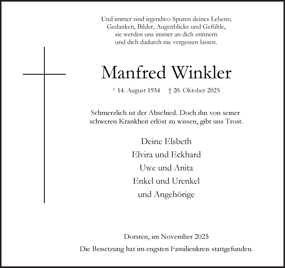 Hier finden Sie alle Traueranzeigen aus der Zeitung, die bisher für Manfred Winkler erschienen sind. Weitere Traueranzeigen, die in der Zeitung erscheinen, werden hier ebenfalls aufgelistet