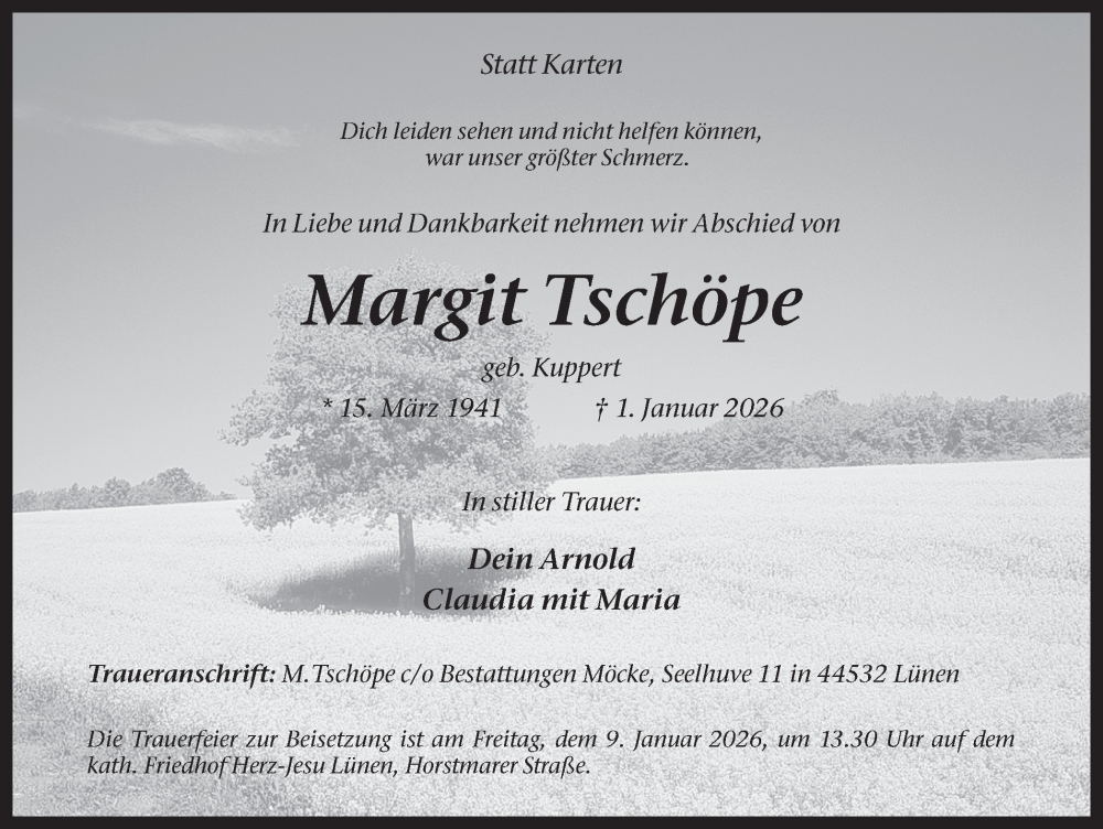 Hier finden Sie alle Traueranzeigen aus der Zeitung, die bisher für Margit Tschöpe erschienen sind. Weitere Traueranzeigen, die in der Zeitung erscheinen, werden hier ebenfalls aufgelistet