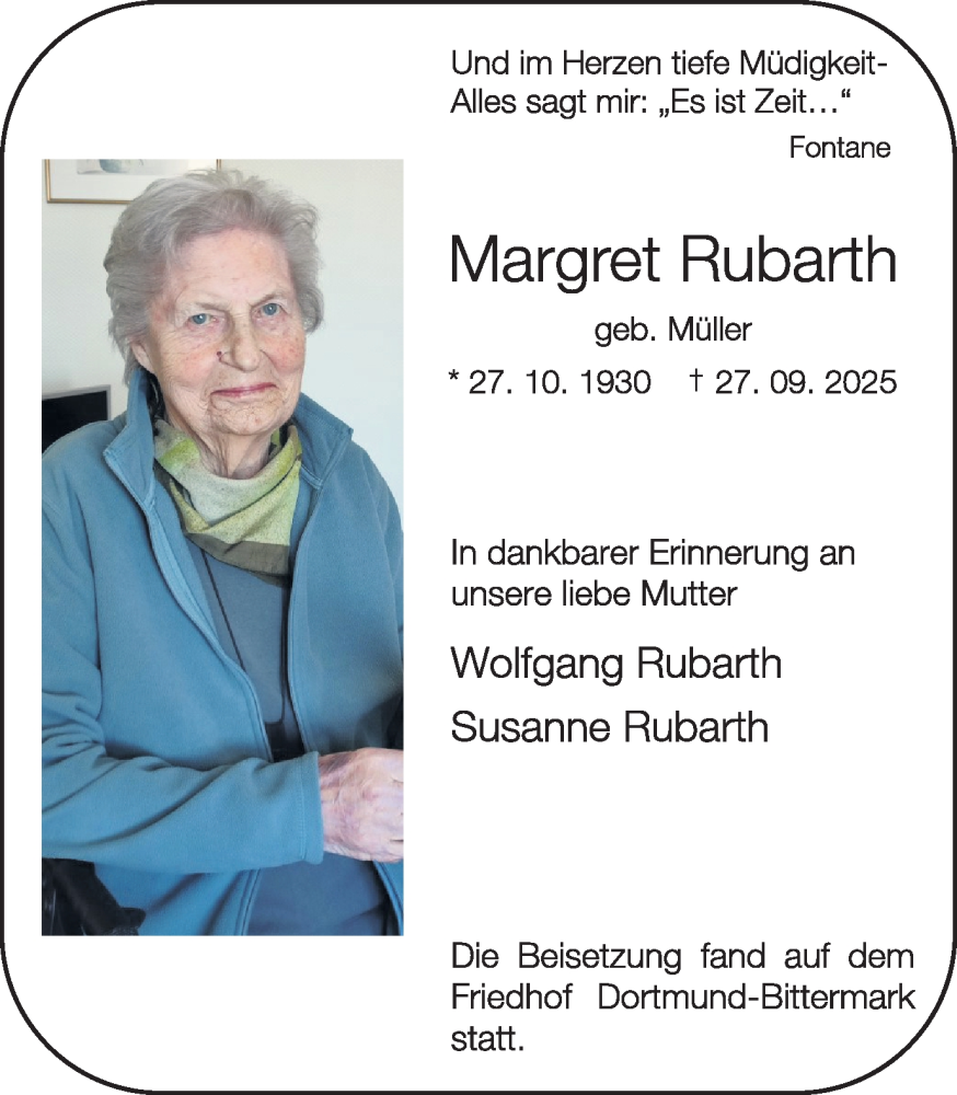 Hier finden Sie alle Traueranzeigen aus der Zeitung, die bisher für Margret Rubarth erschienen sind. Weitere Traueranzeigen, die in der Zeitung erscheinen, werden hier ebenfalls aufgelistet