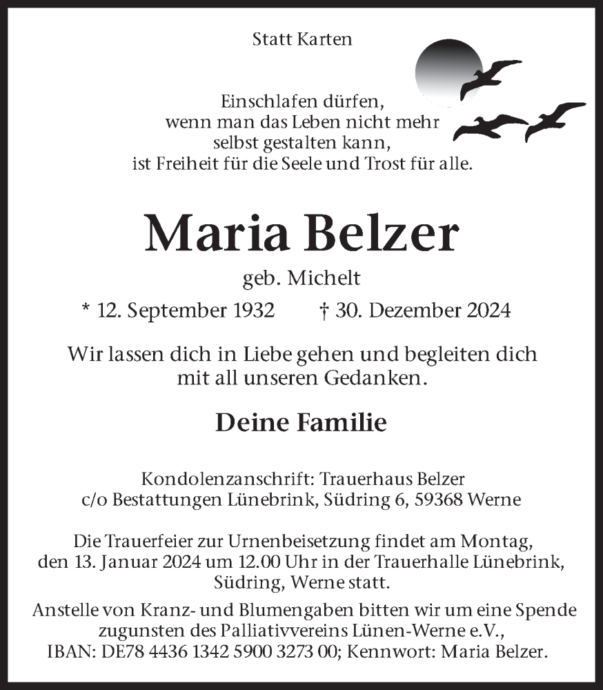 Hier finden Sie alle Traueranzeigen aus der Zeitung, die bisher für Maria Belzer erschienen sind. Weitere Traueranzeigen, die in der Zeitung erscheinen, werden hier ebenfalls aufgelistet