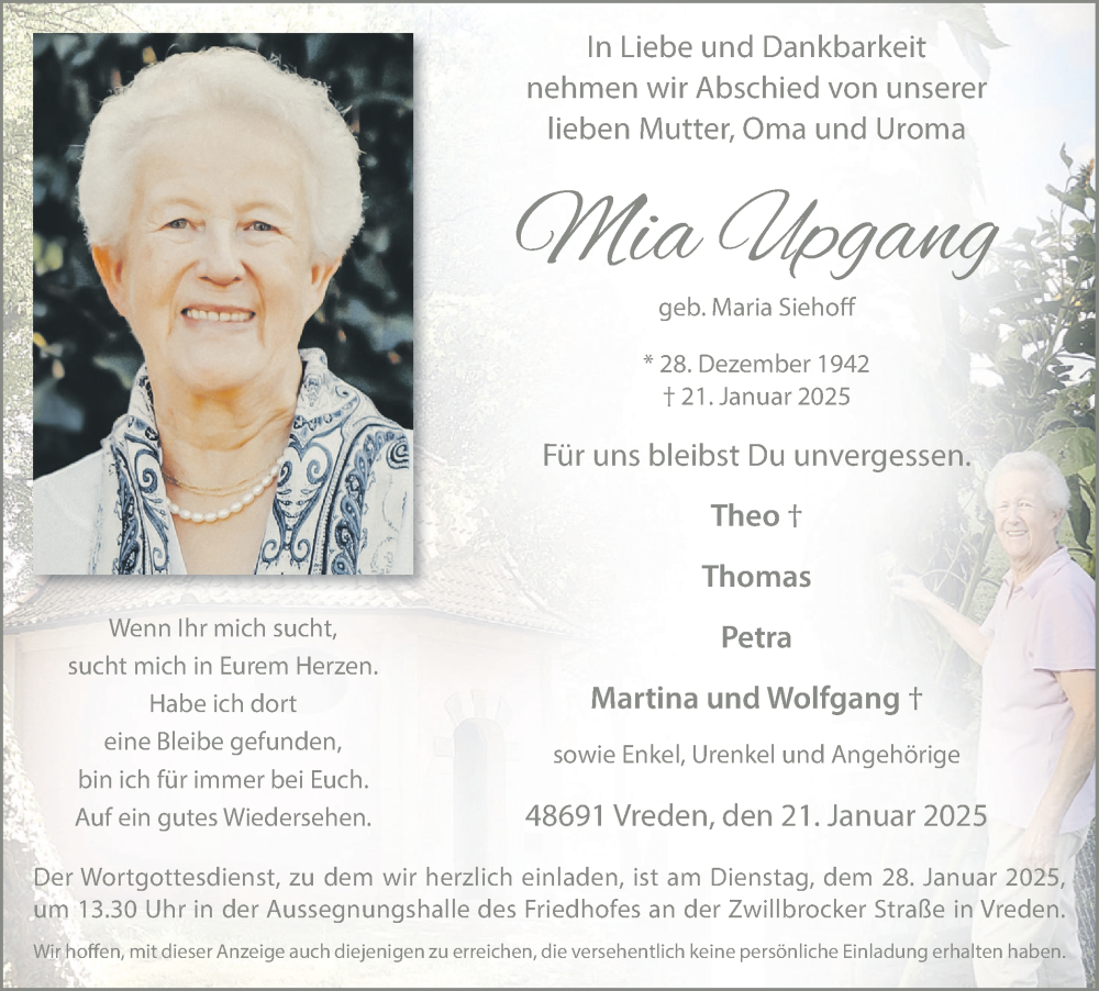 Hier finden Sie alle Traueranzeigen aus der Zeitung, die bisher für Maria Siehoff erschienen sind. Weitere Traueranzeigen, die in der Zeitung erscheinen, werden hier ebenfalls aufgelistet