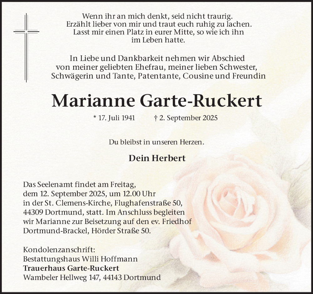 Hier finden Sie alle Traueranzeigen aus der Zeitung, die bisher für Marianne Garte-Ruckert erschienen sind. Weitere Traueranzeigen, die in der Zeitung erscheinen, werden hier ebenfalls aufgelistet
