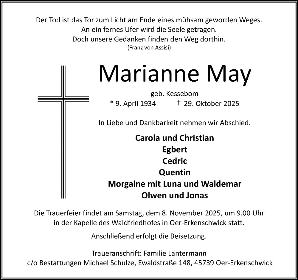 Hier finden Sie alle Traueranzeigen aus der Zeitung, die bisher für Marianne May erschienen sind. Weitere Traueranzeigen, die in der Zeitung erscheinen, werden hier ebenfalls aufgelistet