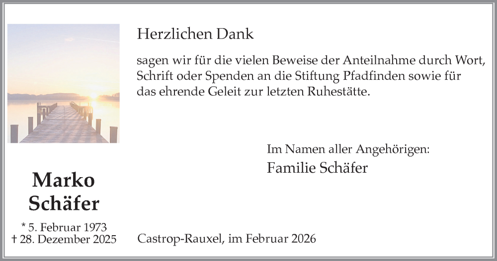 Hier finden Sie alle Traueranzeigen aus der Zeitung, die bisher für Marko Schäfer erschienen sind. Weitere Traueranzeigen, die in der Zeitung erscheinen, werden hier ebenfalls aufgelistet
