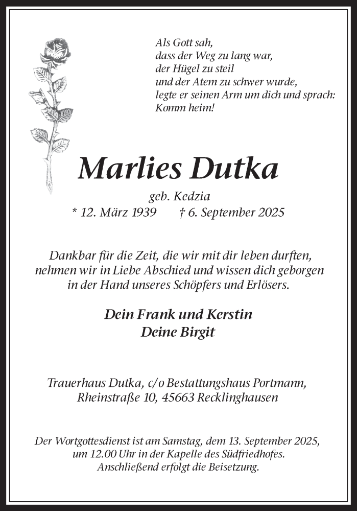 Hier finden Sie alle Traueranzeigen aus der Zeitung, die bisher für Marlies Dutka erschienen sind. Weitere Traueranzeigen, die in der Zeitung erscheinen, werden hier ebenfalls aufgelistet