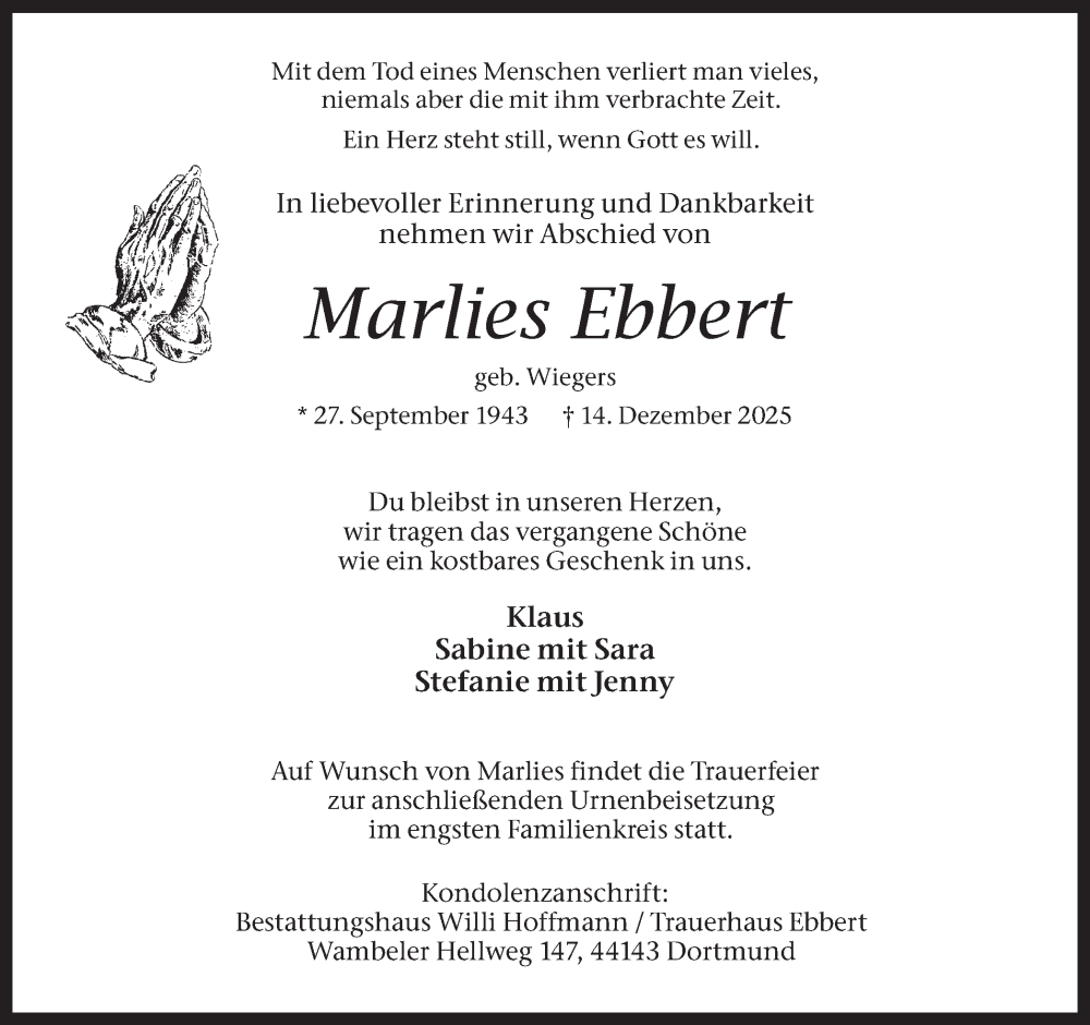 Hier finden Sie alle Traueranzeigen aus der Zeitung, die bisher für Marlies Ebbert erschienen sind. Weitere Traueranzeigen, die in der Zeitung erscheinen, werden hier ebenfalls aufgelistet