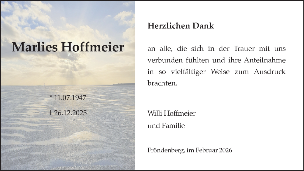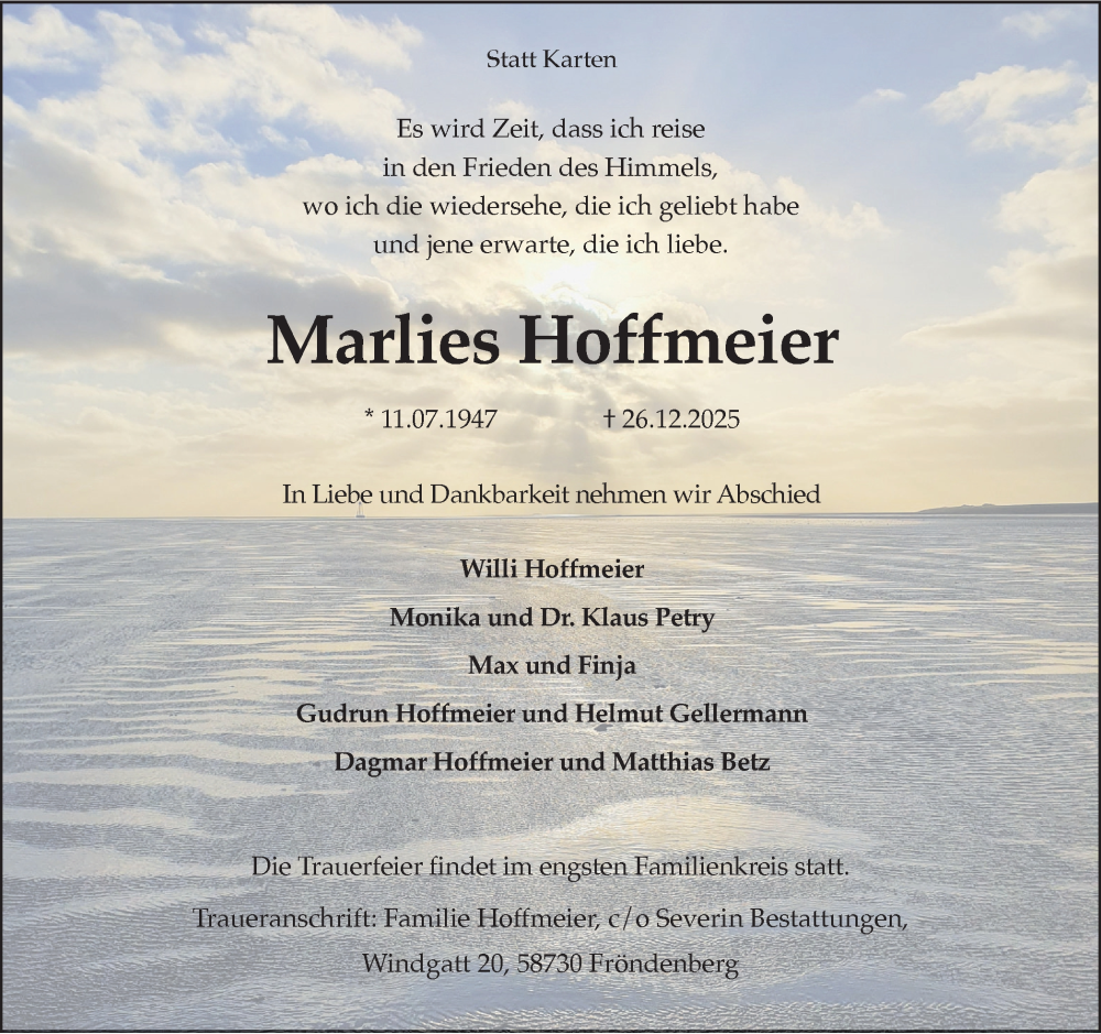 Hier finden Sie alle Traueranzeigen aus der Zeitung, die bisher für Marlies Hoffmeier erschienen sind. Weitere Traueranzeigen, die in der Zeitung erscheinen, werden hier ebenfalls aufgelistet