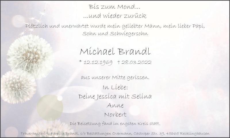 Hier finden Sie alle Traueranzeigen aus der Zeitung, die bisher für Michael Brandl erschienen sind. Weitere Traueranzeigen, die in der Zeitung erscheinen, werden hier ebenfalls aufgelistet