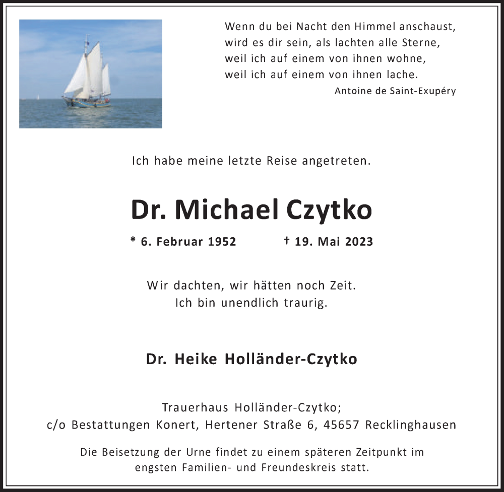 Hier finden Sie alle Traueranzeigen aus der Zeitung, die bisher für Michael Czytko erschienen sind. Weitere Traueranzeigen, die in der Zeitung erscheinen, werden hier ebenfalls aufgelistet