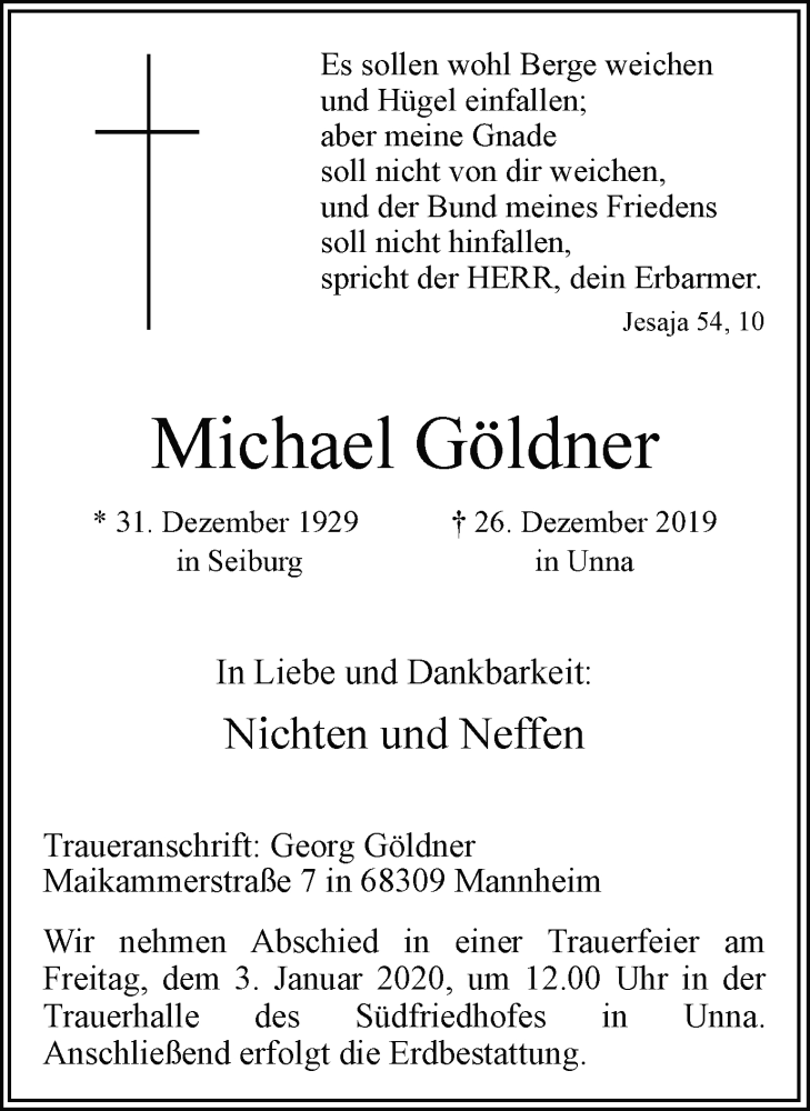 Hier finden Sie alle Traueranzeigen aus der Zeitung, die bisher für Michael Göldner erschienen sind. Weitere Traueranzeigen, die in der Zeitung erscheinen, werden hier ebenfalls aufgelistet