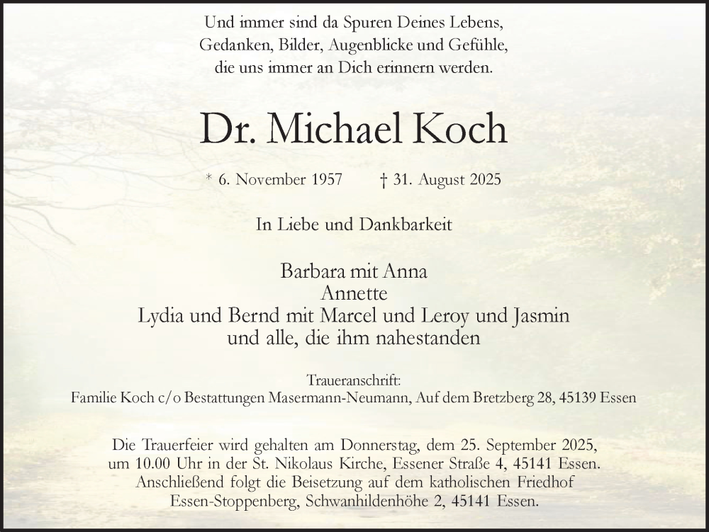 Hier finden Sie alle Traueranzeigen aus der Zeitung, die bisher für Michael Koch erschienen sind. Weitere Traueranzeigen, die in der Zeitung erscheinen, werden hier ebenfalls aufgelistet
