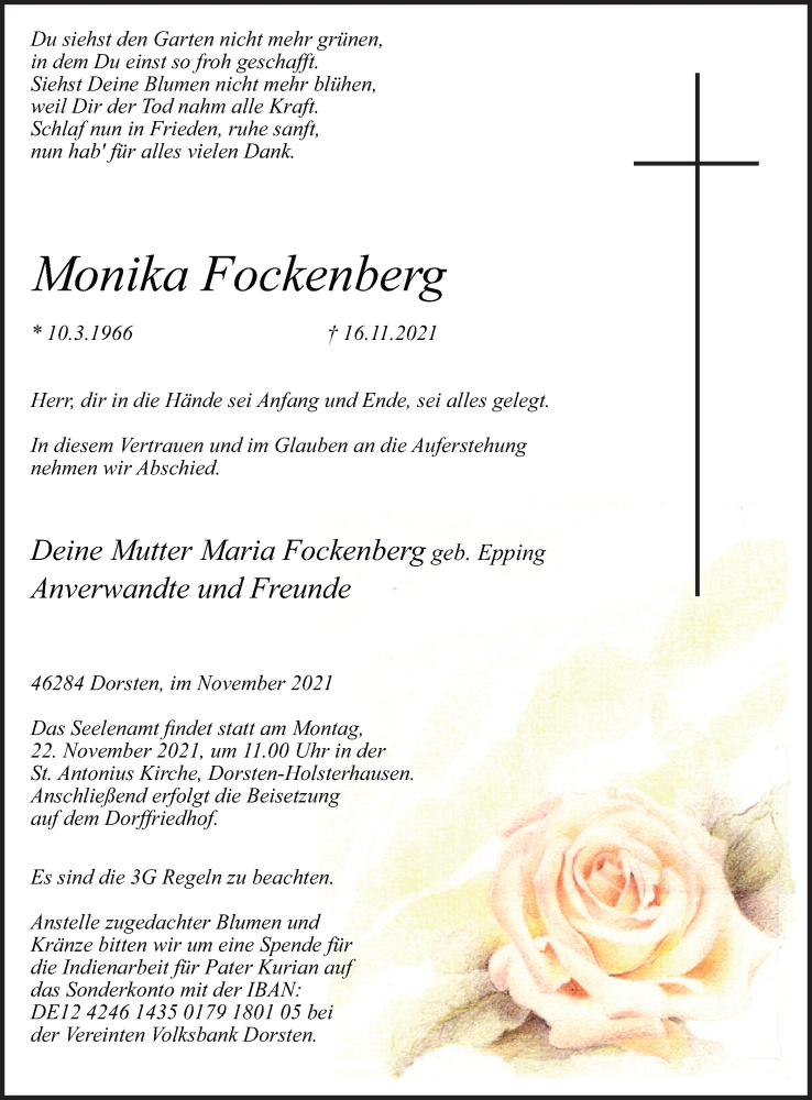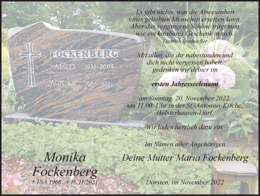 Hier finden Sie alle Traueranzeigen aus der Zeitung, die bisher für Monika Fockenberg erschienen sind. Weitere Traueranzeigen, die in der Zeitung erscheinen, werden hier ebenfalls aufgelistet