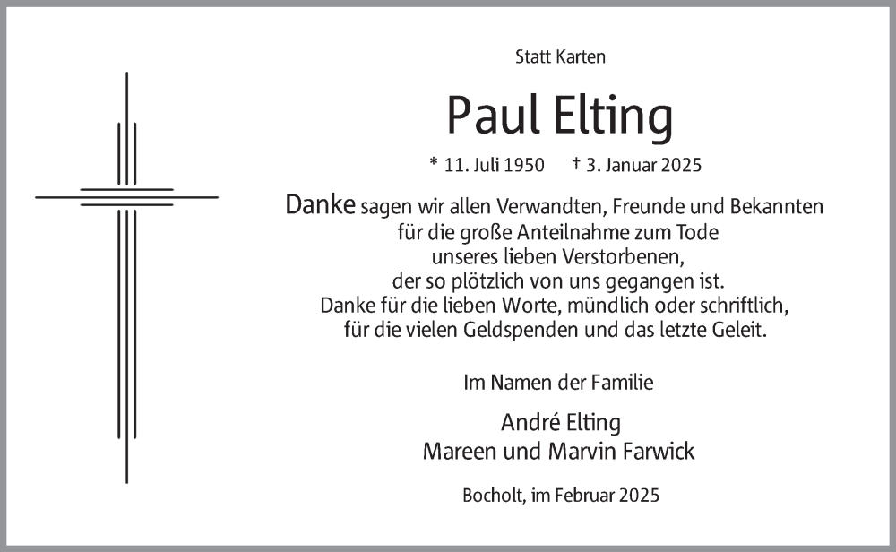 Hier finden Sie alle Traueranzeigen aus der Zeitung, die bisher für Paul Elting erschienen sind. Weitere Traueranzeigen, die in der Zeitung erscheinen, werden hier ebenfalls aufgelistet