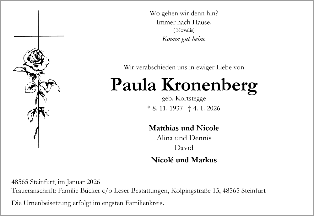 Hier finden Sie alle Traueranzeigen aus der Zeitung, die bisher für Paula Kronenberg erschienen sind. Weitere Traueranzeigen, die in der Zeitung erscheinen, werden hier ebenfalls aufgelistet