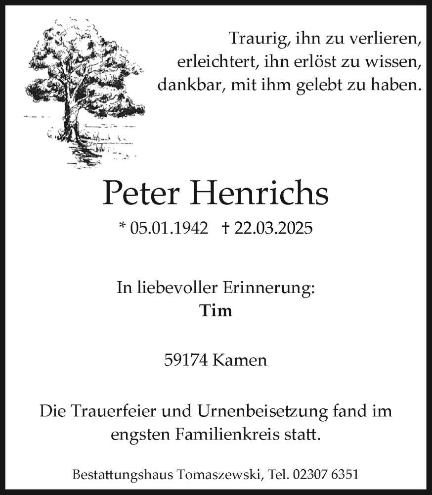 Hier finden Sie alle Traueranzeigen aus der Zeitung, die bisher für Peter Henrichs erschienen sind. Weitere Traueranzeigen, die in der Zeitung erscheinen, werden hier ebenfalls aufgelistet