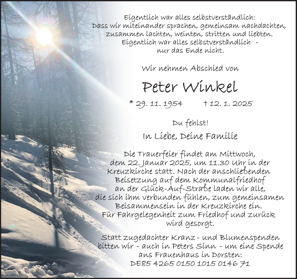 Hier finden Sie alle Traueranzeigen aus der Zeitung, die bisher für Peter Winkel erschienen sind. Weitere Traueranzeigen, die in der Zeitung erscheinen, werden hier ebenfalls aufgelistet