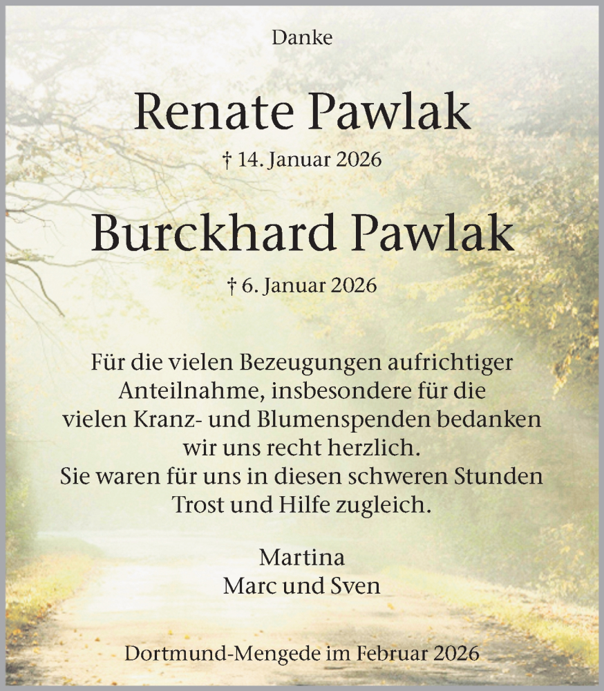 Hier finden Sie alle Traueranzeigen aus der Zeitung, die bisher für Renate Pawlak erschienen sind. Weitere Traueranzeigen, die in der Zeitung erscheinen, werden hier ebenfalls aufgelistet