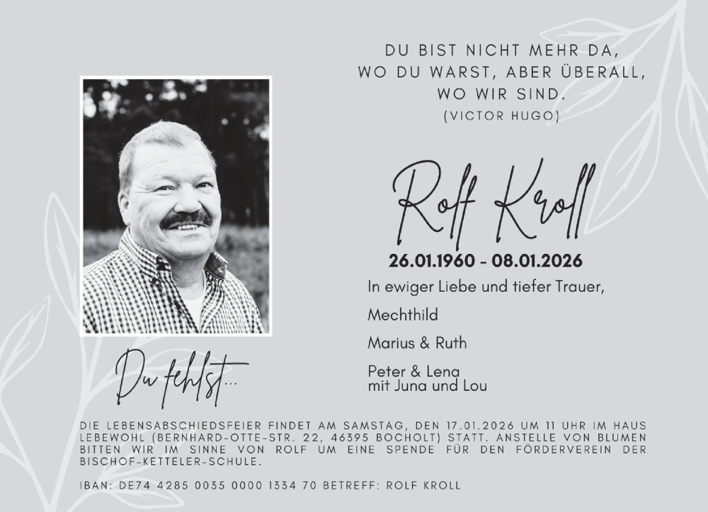 Hier finden Sie alle Traueranzeigen aus der Zeitung, die bisher für Rolf Kroff erschienen sind. Weitere Traueranzeigen, die in der Zeitung erscheinen, werden hier ebenfalls aufgelistet