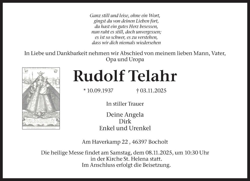 Hier finden Sie alle Traueranzeigen aus der Zeitung, die bisher für Rudolf Telahr erschienen sind. Weitere Traueranzeigen, die in der Zeitung erscheinen, werden hier ebenfalls aufgelistet