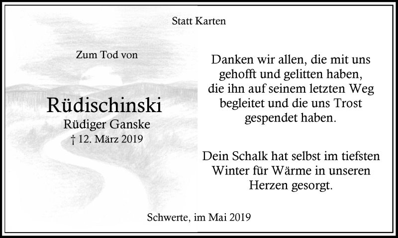 Hier finden Sie alle Traueranzeigen aus der Zeitung, die bisher für Rüdiger Ganske erschienen sind. Weitere Traueranzeigen, die in der Zeitung erscheinen, werden hier ebenfalls aufgelistet