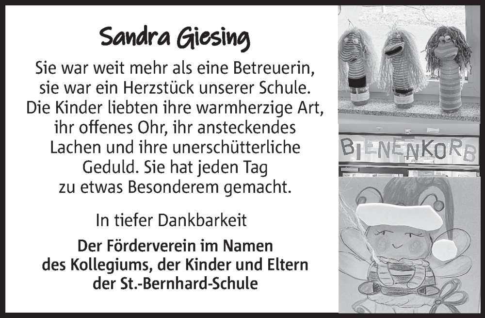 Hier finden Sie alle Traueranzeigen aus der Zeitung, die bisher für Sandra Giesing erschienen sind. Weitere Traueranzeigen, die in der Zeitung erscheinen, werden hier ebenfalls aufgelistet