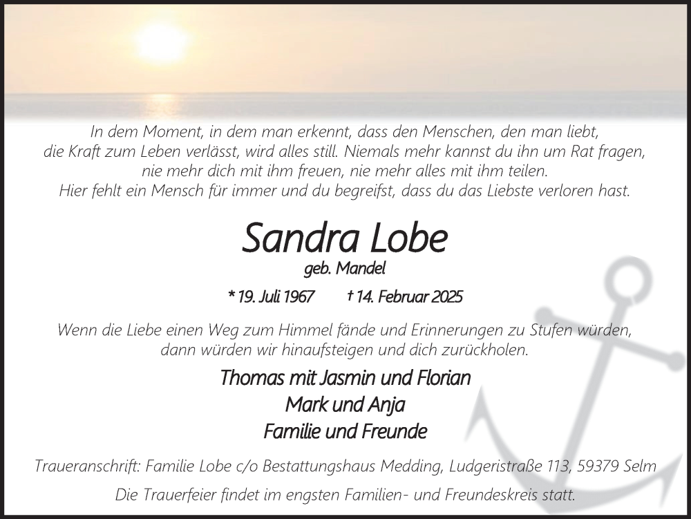 Hier finden Sie alle Traueranzeigen aus der Zeitung, die bisher für Sandra Lobe erschienen sind. Weitere Traueranzeigen, die in der Zeitung erscheinen, werden hier ebenfalls aufgelistet