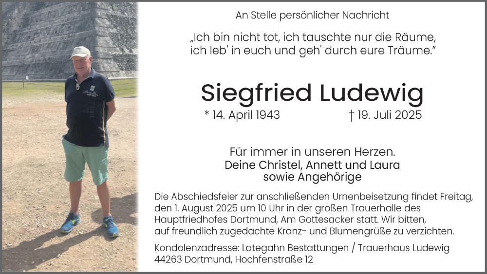 Hier finden Sie alle Traueranzeigen aus der Zeitung, die bisher für Siegfried Ludewig erschienen sind. Weitere Traueranzeigen, die in der Zeitung erscheinen, werden hier ebenfalls aufgelistet