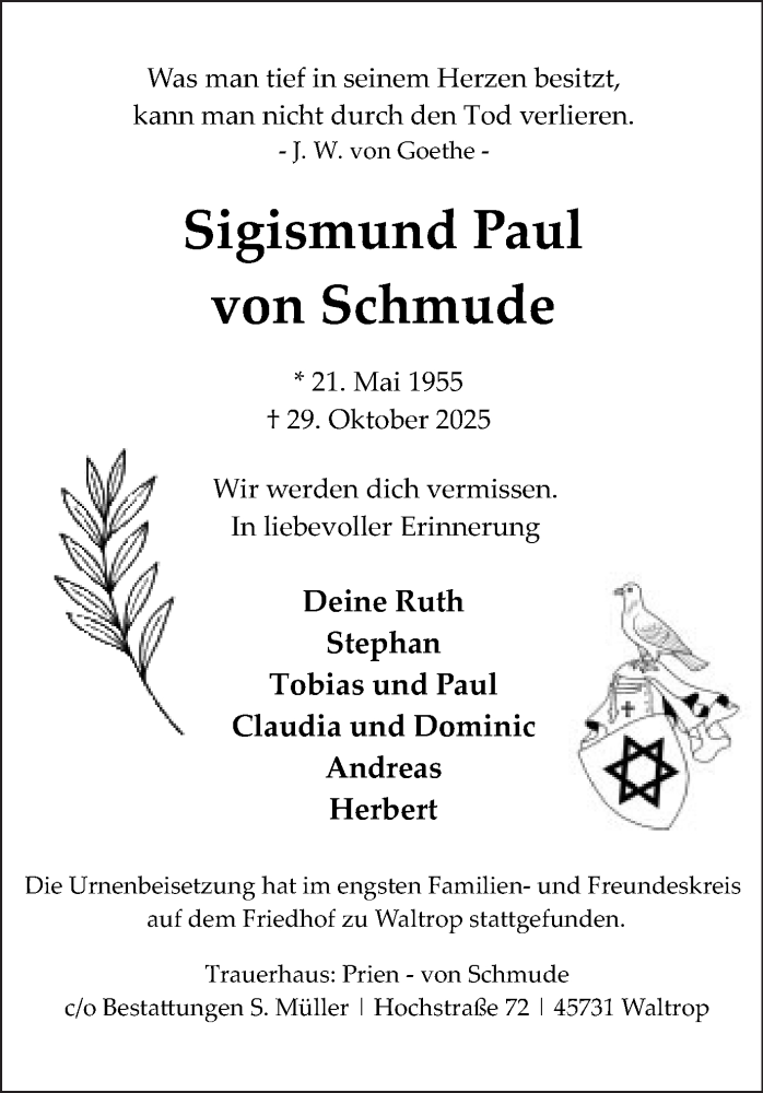 Hier finden Sie alle Traueranzeigen aus der Zeitung, die bisher für Sigismund Paul von Schmude erschienen sind. Weitere Traueranzeigen, die in der Zeitung erscheinen, werden hier ebenfalls aufgelistet