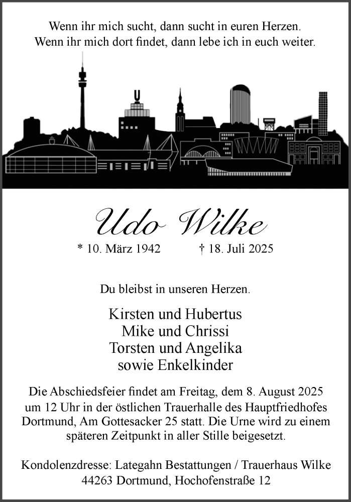 Hier finden Sie alle Traueranzeigen aus der Zeitung, die bisher für Udo Wilke erschienen sind. Weitere Traueranzeigen, die in der Zeitung erscheinen, werden hier ebenfalls aufgelistet