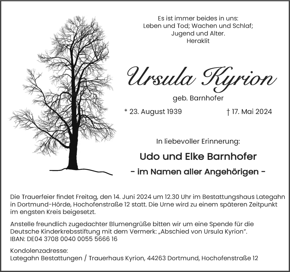 Hier finden Sie alle Traueranzeigen aus der Zeitung, die bisher für Ursula Kyrion erschienen sind. Weitere Traueranzeigen, die in der Zeitung erscheinen, werden hier ebenfalls aufgelistet