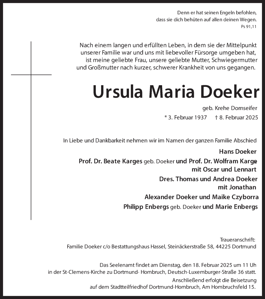 Hier finden Sie alle Traueranzeigen aus der Zeitung, die bisher für Ursula Maria Doeker erschienen sind. Weitere Traueranzeigen, die in der Zeitung erscheinen, werden hier ebenfalls aufgelistet