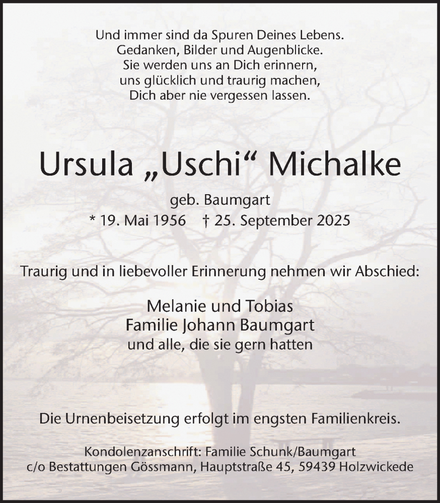 Hier finden Sie alle Traueranzeigen aus der Zeitung, die bisher für Ursula Michalke erschienen sind. Weitere Traueranzeigen, die in der Zeitung erscheinen, werden hier ebenfalls aufgelistet