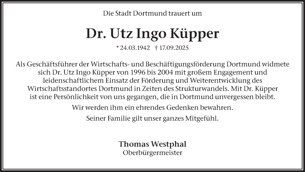Hier finden Sie alle Traueranzeigen aus der Zeitung, die bisher für Utz Ingo Küpper erschienen sind. Weitere Traueranzeigen, die in der Zeitung erscheinen, werden hier ebenfalls aufgelistet