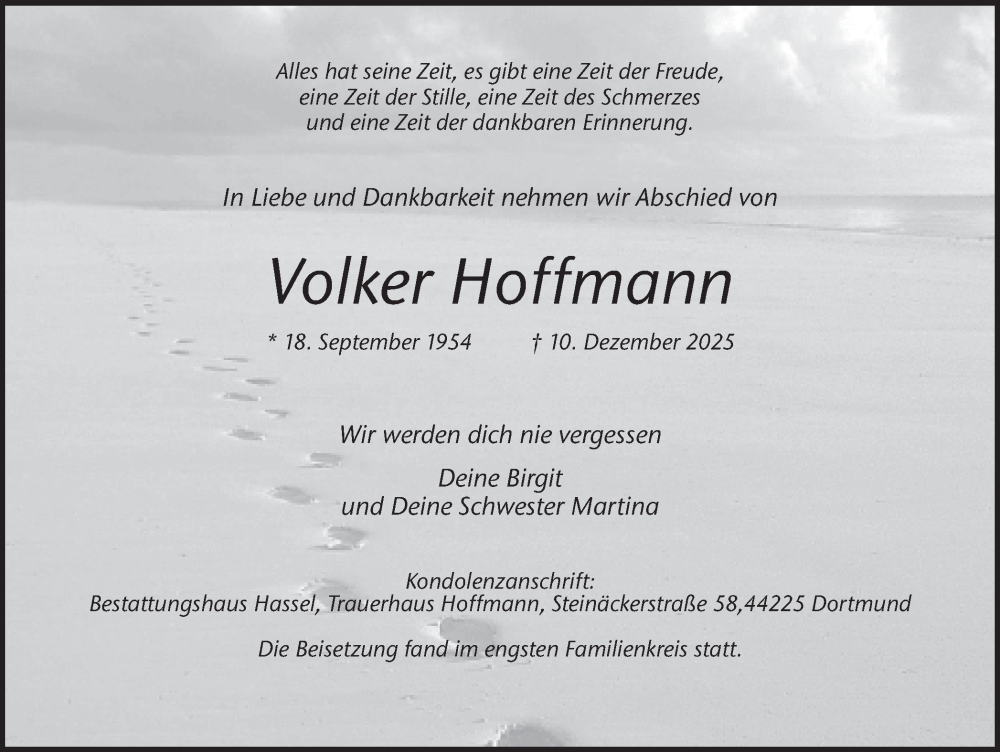 Hier finden Sie alle Traueranzeigen aus der Zeitung, die bisher für Volker Hoffmann erschienen sind. Weitere Traueranzeigen, die in der Zeitung erscheinen, werden hier ebenfalls aufgelistet