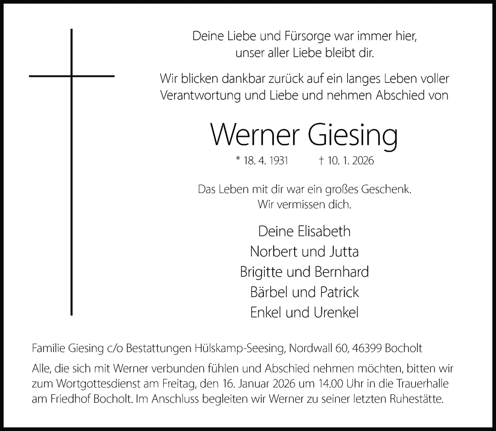 Hier finden Sie alle Traueranzeigen aus der Zeitung, die bisher für Werner Giesing erschienen sind. Weitere Traueranzeigen, die in der Zeitung erscheinen, werden hier ebenfalls aufgelistet