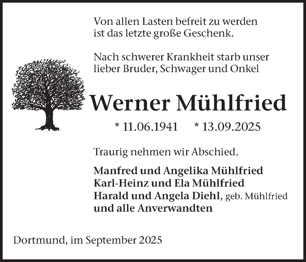 Hier finden Sie alle Traueranzeigen aus der Zeitung, die bisher für Werner Mühlfried erschienen sind. Weitere Traueranzeigen, die in der Zeitung erscheinen, werden hier ebenfalls aufgelistet