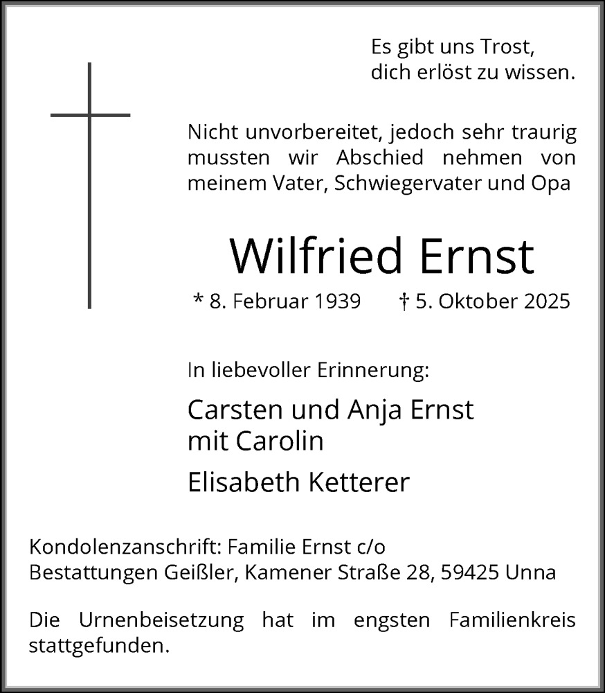 Hier finden Sie alle Traueranzeigen aus der Zeitung, die bisher für Wilfried Ernst erschienen sind. Weitere Traueranzeigen, die in der Zeitung erscheinen, werden hier ebenfalls aufgelistet