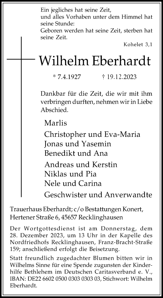 Hier finden Sie alle Traueranzeigen aus der Zeitung, die bisher für Wilhelm Eberhardt erschienen sind. Weitere Traueranzeigen, die in der Zeitung erscheinen, werden hier ebenfalls aufgelistet