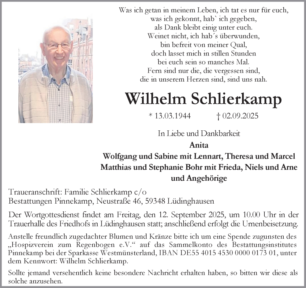 Hier finden Sie alle Traueranzeigen aus der Zeitung, die bisher für Wilhelm Schlierkamp erschienen sind. Weitere Traueranzeigen, die in der Zeitung erscheinen, werden hier ebenfalls aufgelistet